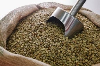 Granos de café verde sin tostar, ricos en ácido clorogénico y antioxidantes que se pierden durante el tostado tradicional.